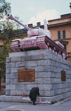 In an art action in 1991, the Czech artist David Černý painted a Soviet tank pink on the base of a monument. The tank was a memorial to the first Soviet tank which came to Prague in May of 1945.